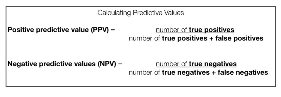 Positive Predictive Value (PPV): Proportion of patients who TEST POSITIVE and HAVE THE PATHOLOGY. The ability to detect a true positive.