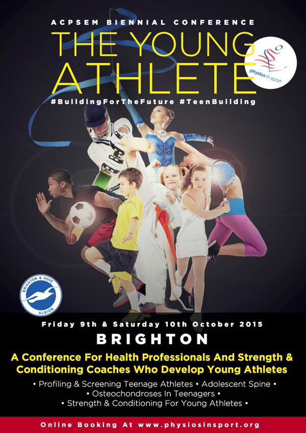 Sam is the South East representative for the ACPSEM (Physios in Sport) and Lead organiser of the 2015 biennial conference in Brighton, 9-10th October: “The Young Athlete” – early bird tickets available until 31st May 2015 please visit physiosinsport.org for more information or click the picture below.