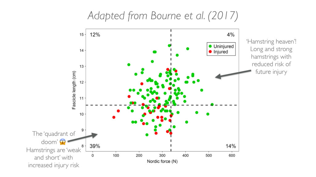 Take home: (if available) fascicle length >10cm and Nordbord score above 400. Consider ‘monitoring’ of hamstring strength / fatigue and strengthen previously injured athletes and the supporting musculature.
