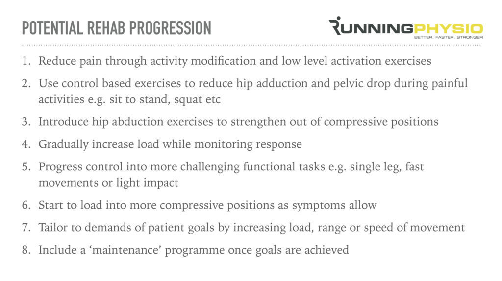 If you’d like to learn more about rehab for patient’s with tendinopathy then check out our webinar series on lateral hip pain which you can access for free on our Running Resource Page. We fit a lot into this series including common mistakes and how to fix them, pain and pathology and rehab progression: