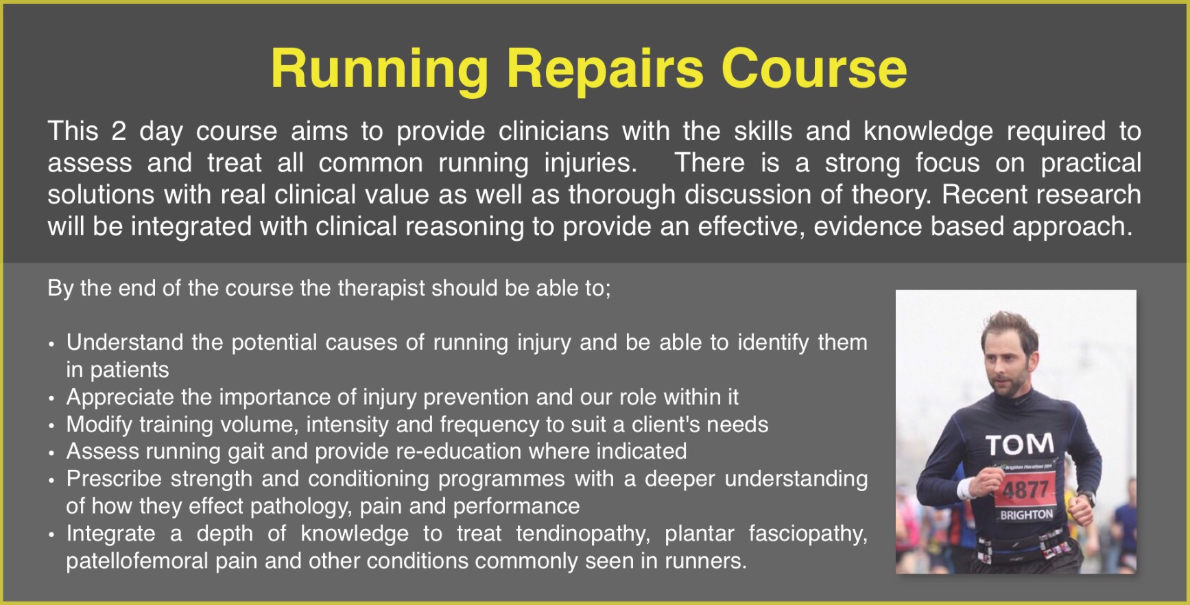 […] source of evidence-based information for runners and clinicians and he teaches around the UK on his Running Repairs Course. You can follow Tom on Twitter via […]