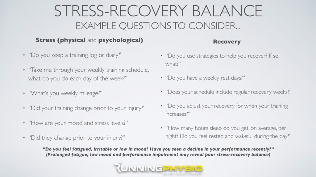 A key point to take away is this, in order to achieve stress-recovery balance we need to assess both the stress (physical and psychological) and the recovery strategies.